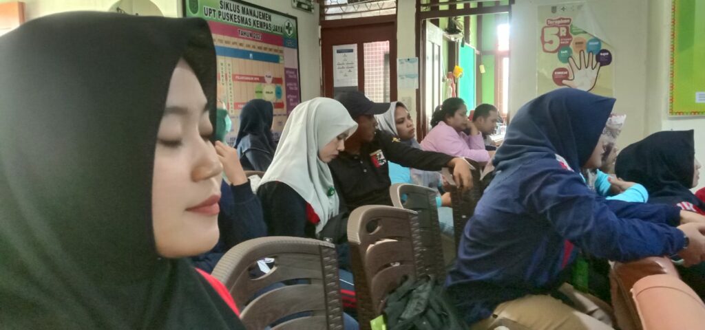 Kegiatan langsung di pimpin oleh dr. Hj. Dwi Agustina Fajarwati, MH selaku Kepala UPT Puskesmas Kempas Jaya dan moderator H. Azmir, SKM selaku KTU UPT Puskesmas Kempas Jaya.